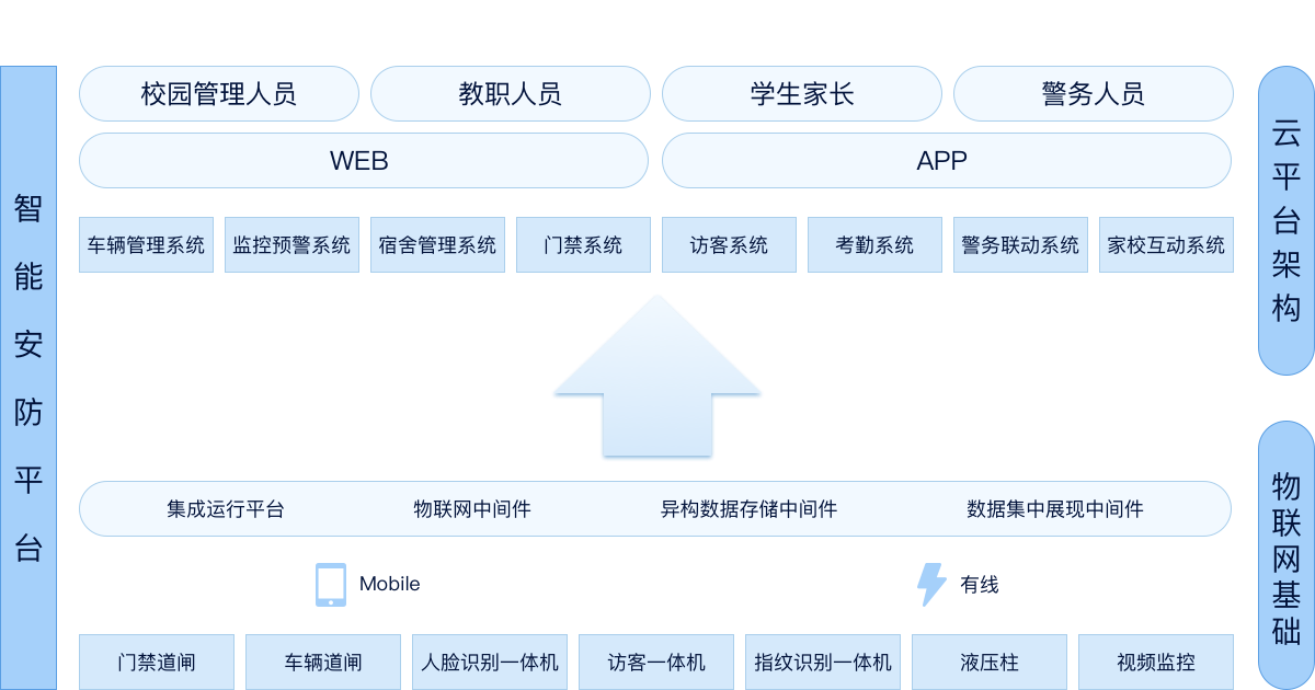平臺通過針對校園安全的深入研究,結(jié)合物聯(lián)網(wǎng)、大數(shù)據(jù)、人工智能(AI)、云計(jì)算的技術(shù),集成了8大應(yīng)用系統(tǒng),打造了一款校園智能安防平臺,為學(xué)校解決了安全管理難的問題。